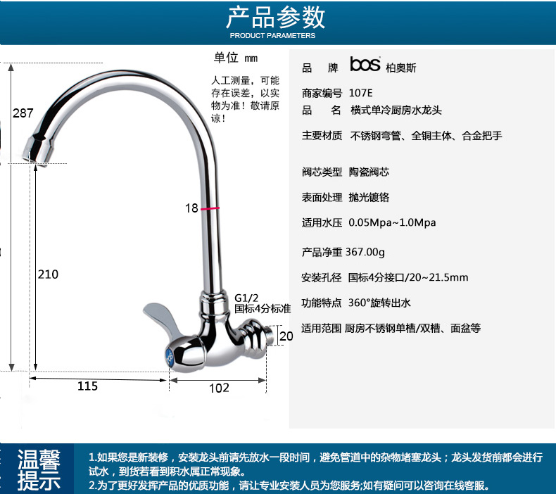 • 商品名稱:單冷橫式廚房龍頭